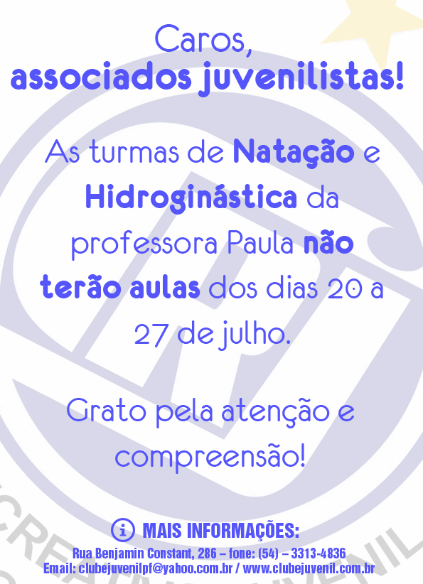Aviso: Aulas de Natação e Hidro